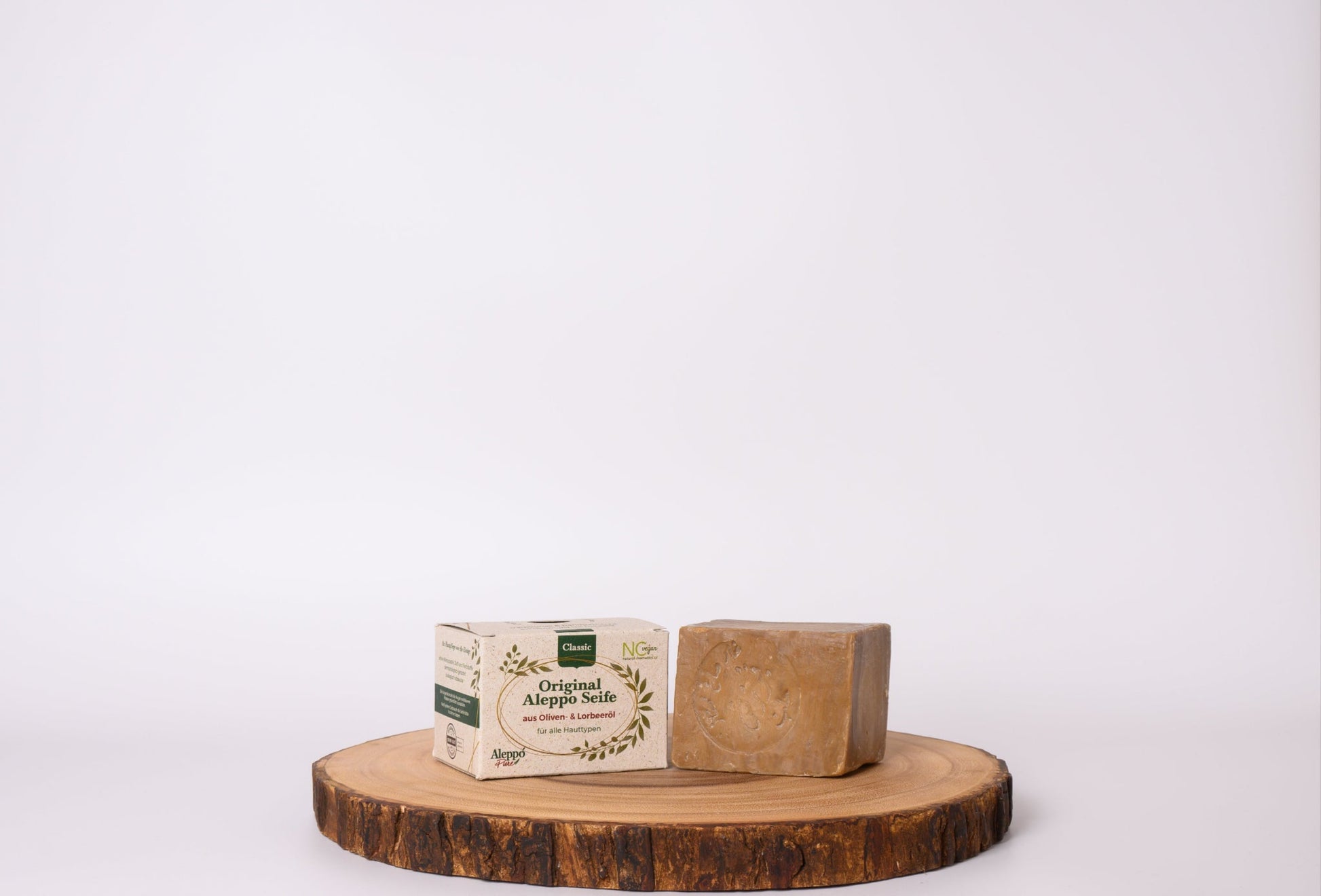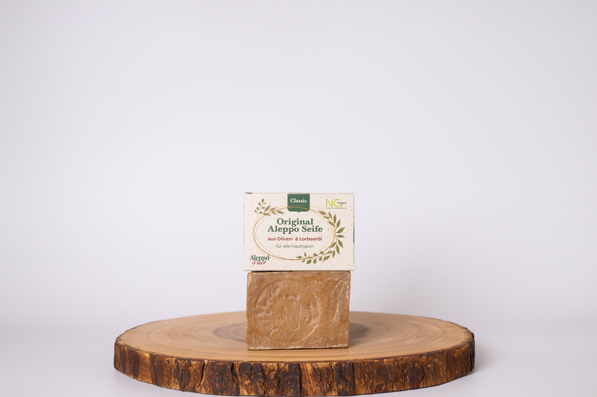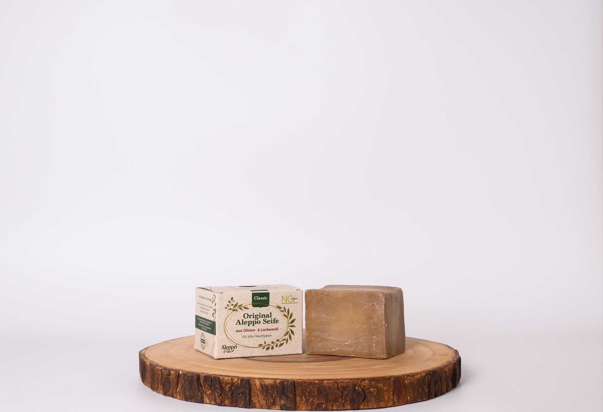 Unsere Seife ist ein Originalprodukt aus Aleppo, das nach jahrhundertealter Tradition mit hochwertigen, natürlichen Inhaltsstoffen wie Olivenöl und Lorbeeröl gefertigt wird.